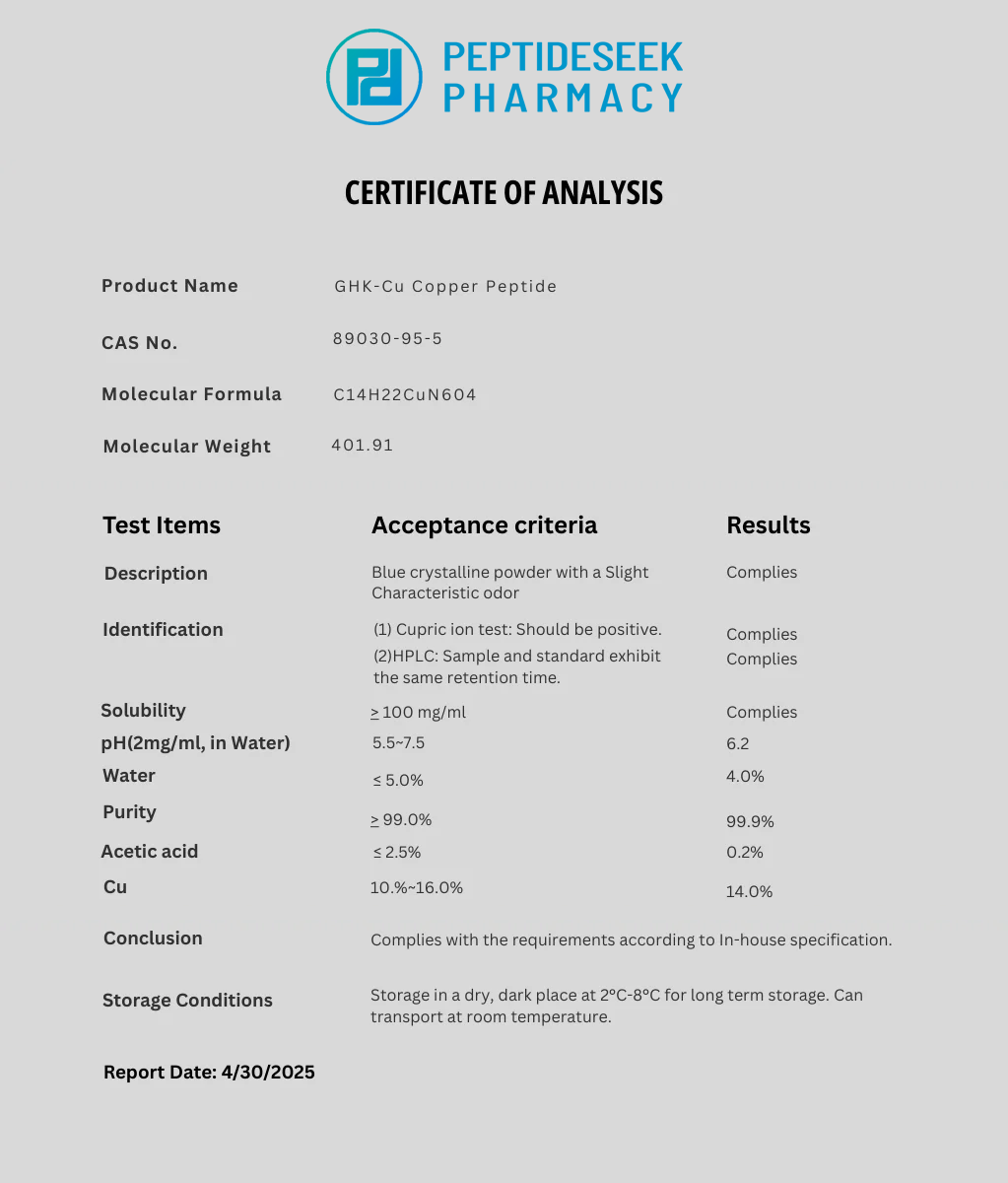 GHK-Cu peptide is available for research and laboratory purposes only. Please review and adhere to our Terms and Conditions before ordering.